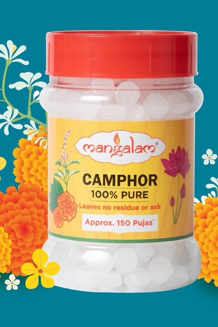 This camphor is prepared using traditional methods to ensure purity and consistency. It does not contain harmful chemicals or fillers and leaves no residue after burning, making it ideal for sacred use.