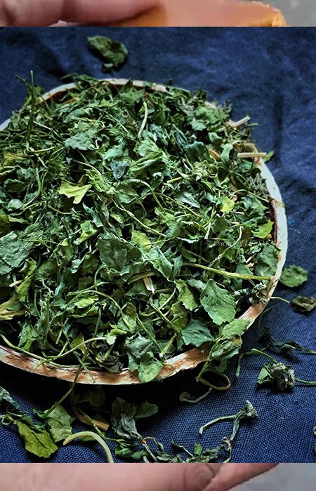 Fresh fenugreek leaves are cleaned and sun-dried using traditional methods. No artificial colours, preservatives, or additives are used, ensuring natural quality.